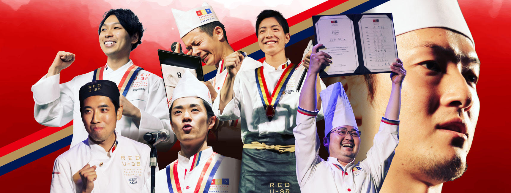 歴代のRED U-35コンペティションにおいて、グランプリRED EGGを筆頭に優秀な成績をおさめた若手料理人たちのウィナーズリスト。意欲あふれる若者たちがジャンルを超えて集まり、競い合った記録。